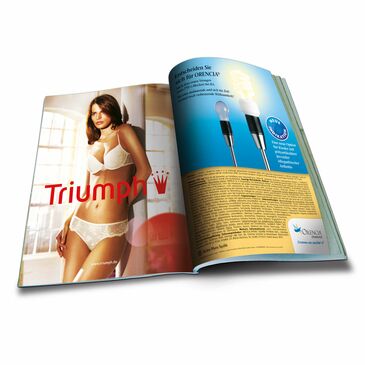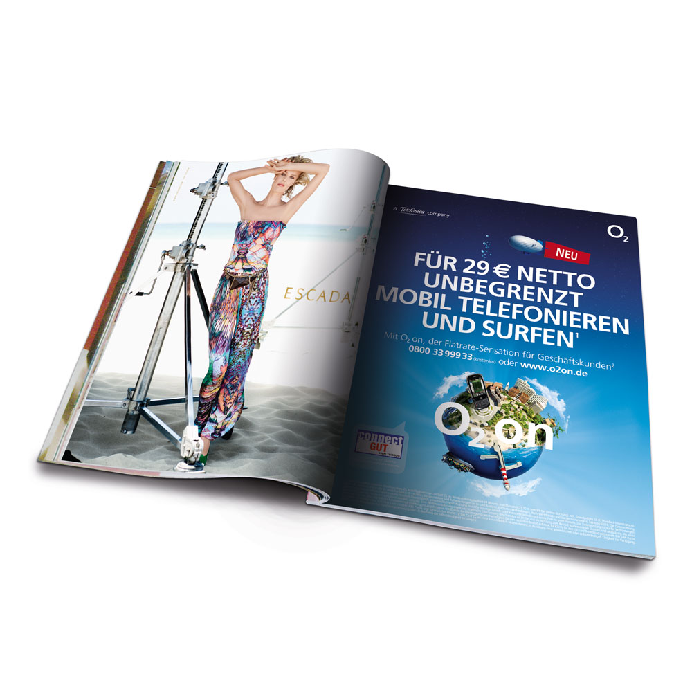 Meine Hauptaufgaben lagen in der Reinzeichnung von Broschüren und Flyern aller Art, sowie der Gestaltung von Anzeigen für Kunden wie O2, Triumph, Escada oder Bristol-Myers Squibb.
