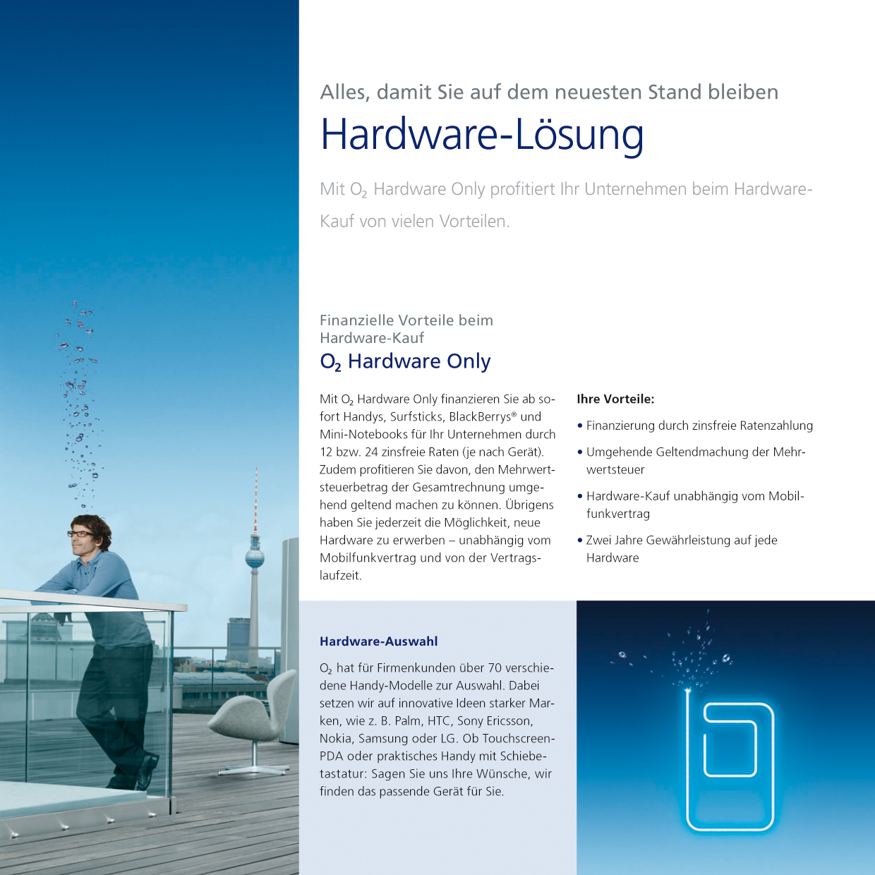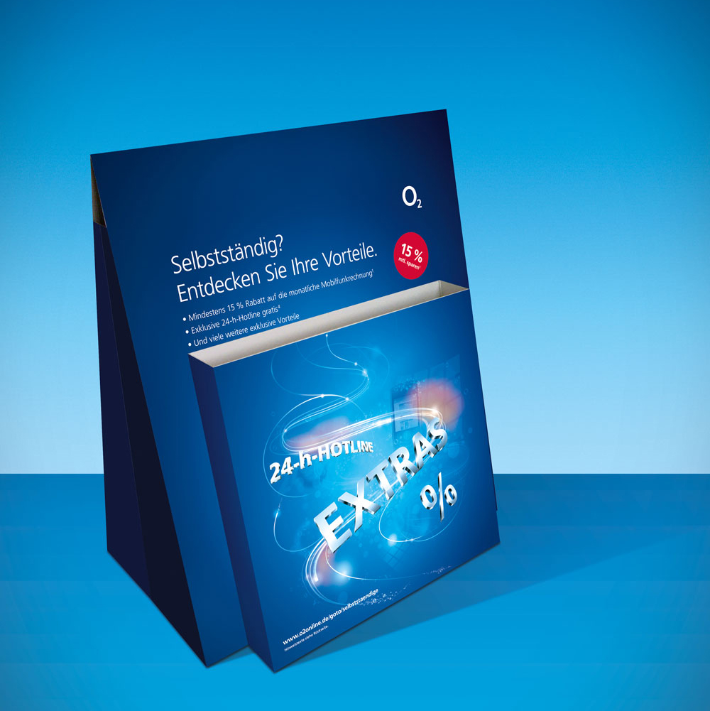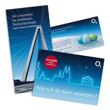 Zusätzlich konnte ich mein Know-how in der kreativen Bildbearbeitung und im Composing ausbauen. Für den Kunden O2 war ich neben der Verwaltung der Bilddatenbank, der Gestaltung und Reinzeichnung der Kampagnenwerbemittel auch für die Projektleitung verantwortlich. Dies umfasste die Ablaufplanung vom Rohlayout bis zur fertigen Druckunterlage, Kapazitätenplanung, Kundenberatung bis hin zur Endkontrolle.