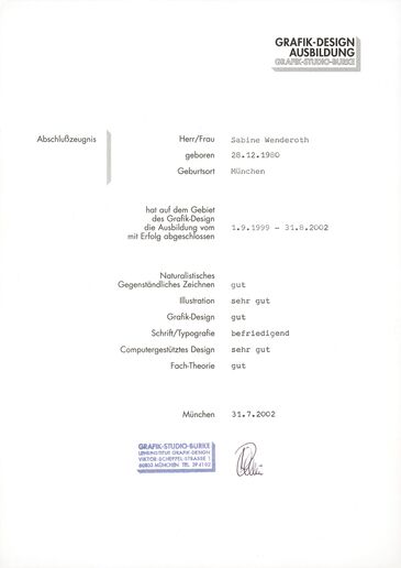 Mit dem dreijährigen privaten Studiengang zur Grafikdesignerin habe ich den Grundstein für meine berufliche Laufbahn gelegt. Während des Studiums konnte ich mir ein breit gefächertes Wissen über die Welt der Werbung aneignen – von der Gestaltung diverser Werbemittel über die Ausarbeitung von Kampagnen bis hin zur Entwicklung von Corporate Designs.