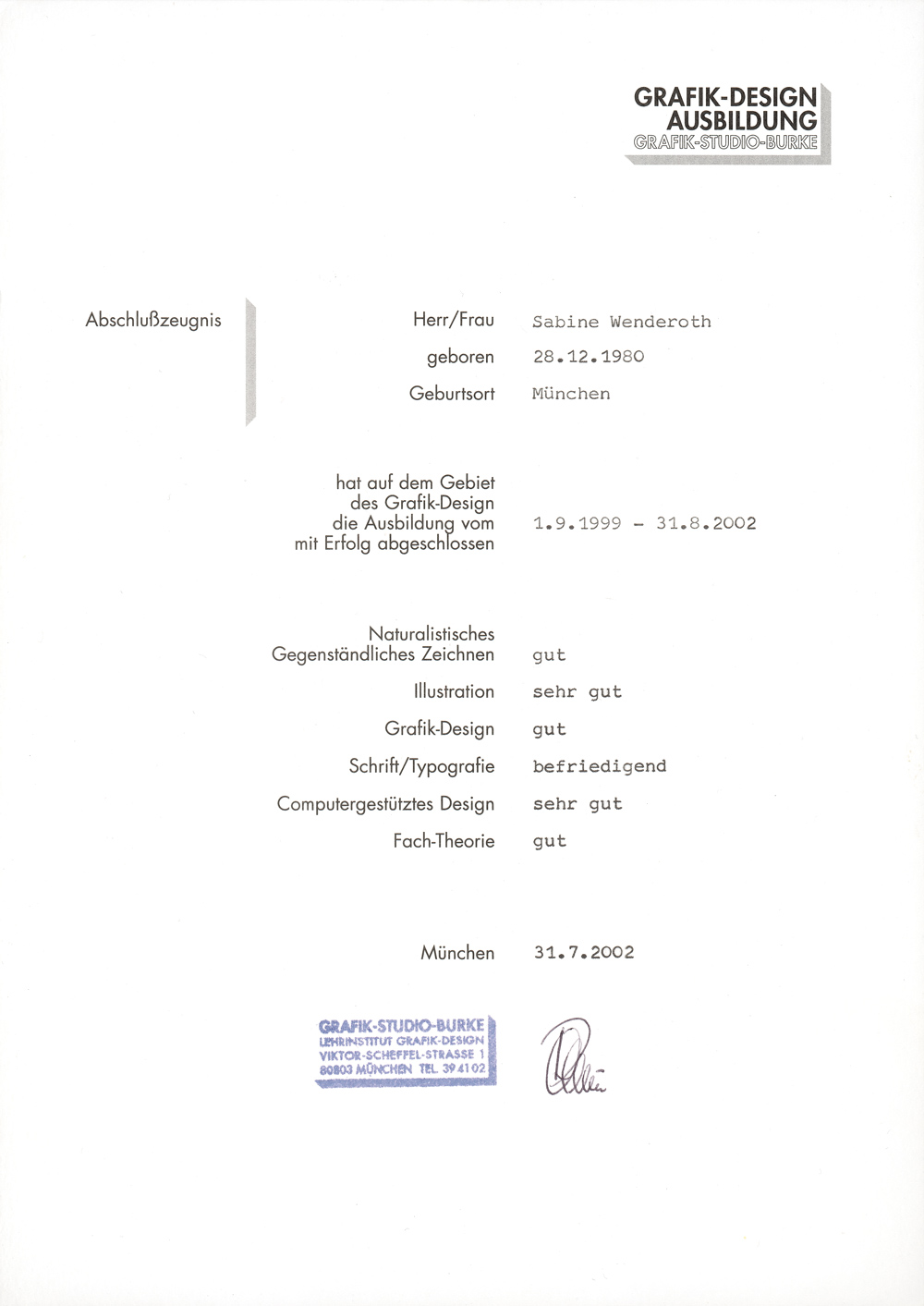Die Zeit des Studiums liegt sehr weit in der Vergangenheit. Die Arbeiten aus meinem Studium spiegeln heute nicht mehr mein Können wider, deshalb finden sie hier keine Arbeitsproben.