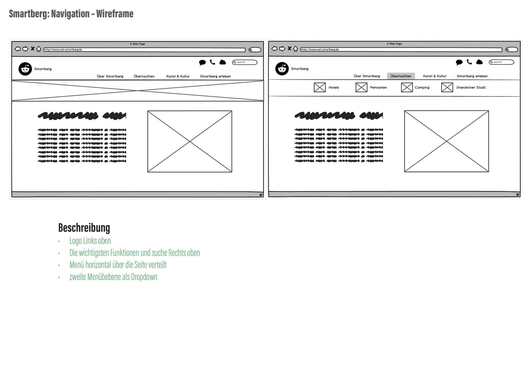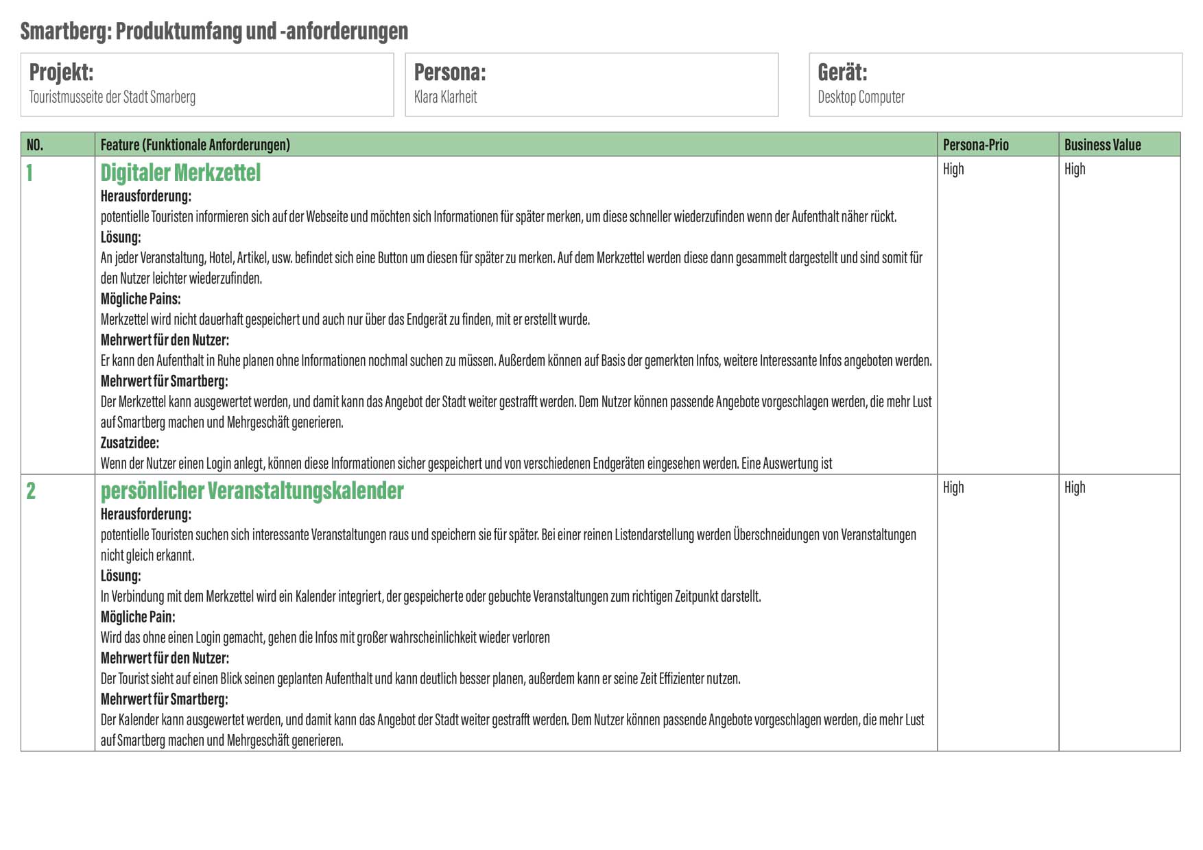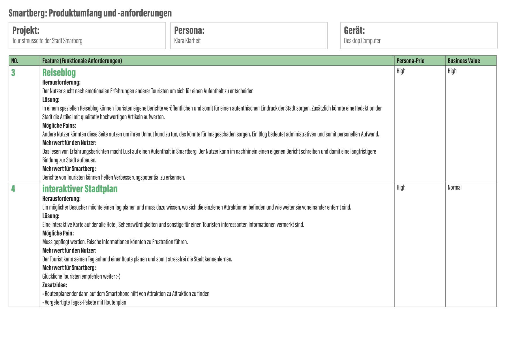 Smartberg möchte zu einer attraktiven Stadtmarke werden, um Touristen anzuziehen. Die Webseite soll hierzu um eine Art Serviceplattform erweitert werden. Natürlich handelt es sich bei Smartberg um eine fiktive Stadt, die aber Orten wie Freiburg und Tübingen nachempfunden wurde.