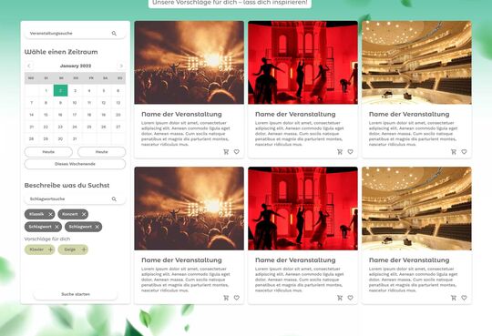 Jetzt wird es zum ersten Mal bunt! Mit Hilfe von Adobe XD wurde das Konzept für eine übergreifende Suche entwickelt. Hier wird zum einen das Suchfeld an sich betrachtet, und wie das System den Nutzer durch eine Autosuggest Funktion unterstützen kann. Außerdem entstand ein Entwurf für eine Suchergebnis Seite. Diese enthält dann noch weitere Filter und Sortierungsmöglichkeiten.