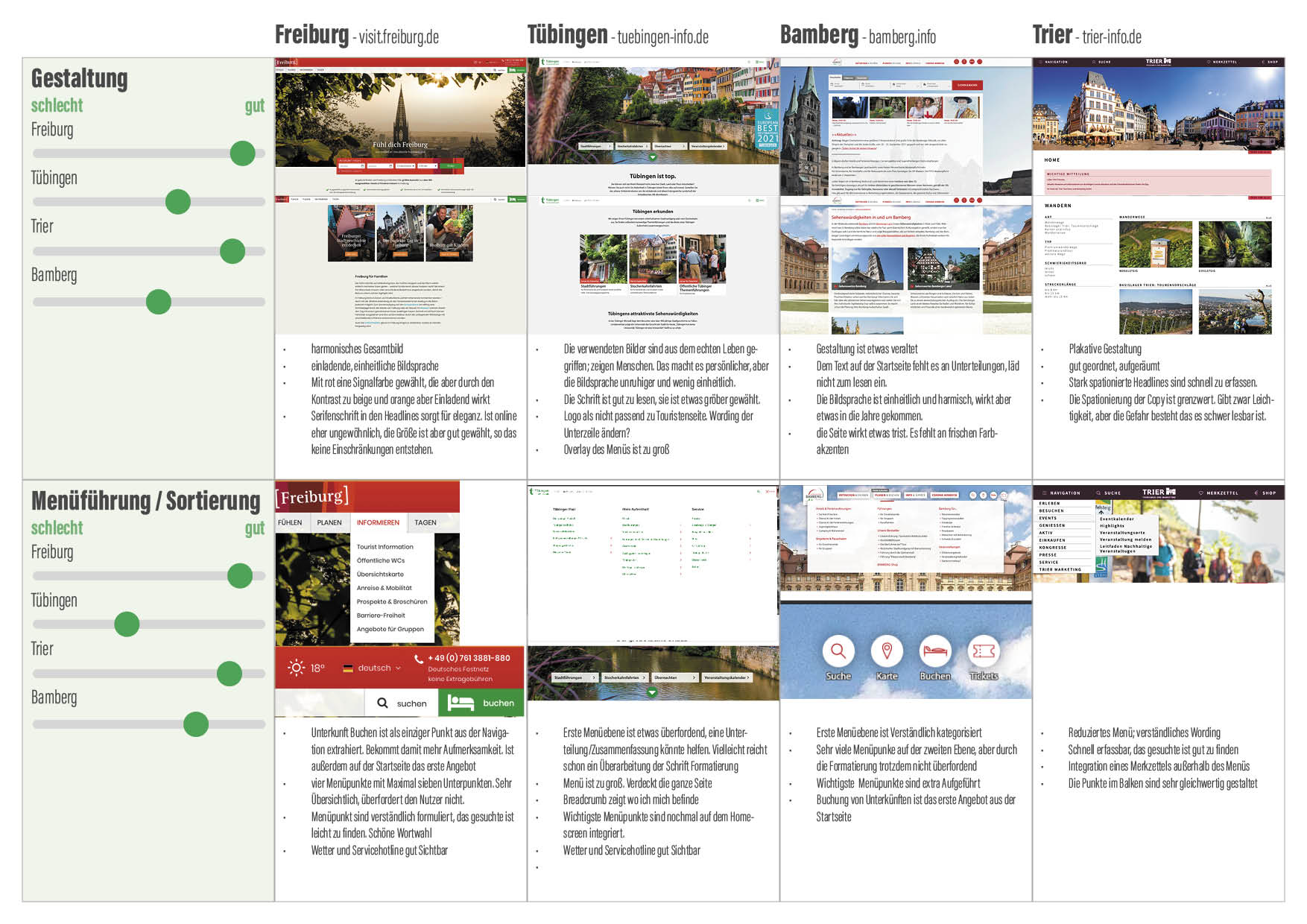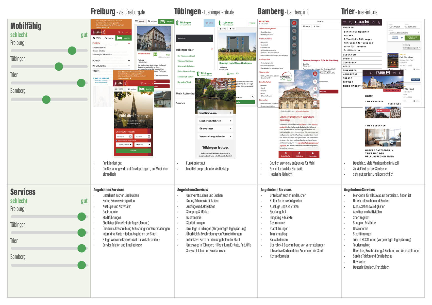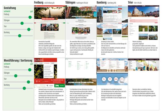 Während der ganzen Analysephase kamen immer wieder vergleichbare Städte ins Spiel. Bei der Produktanalyse, wurden diese dann ganz genau unter die Lupe genommen. Was macht die Konkurrenz gut oder weniger gut? Was können wir daraus lernen und besser machen.