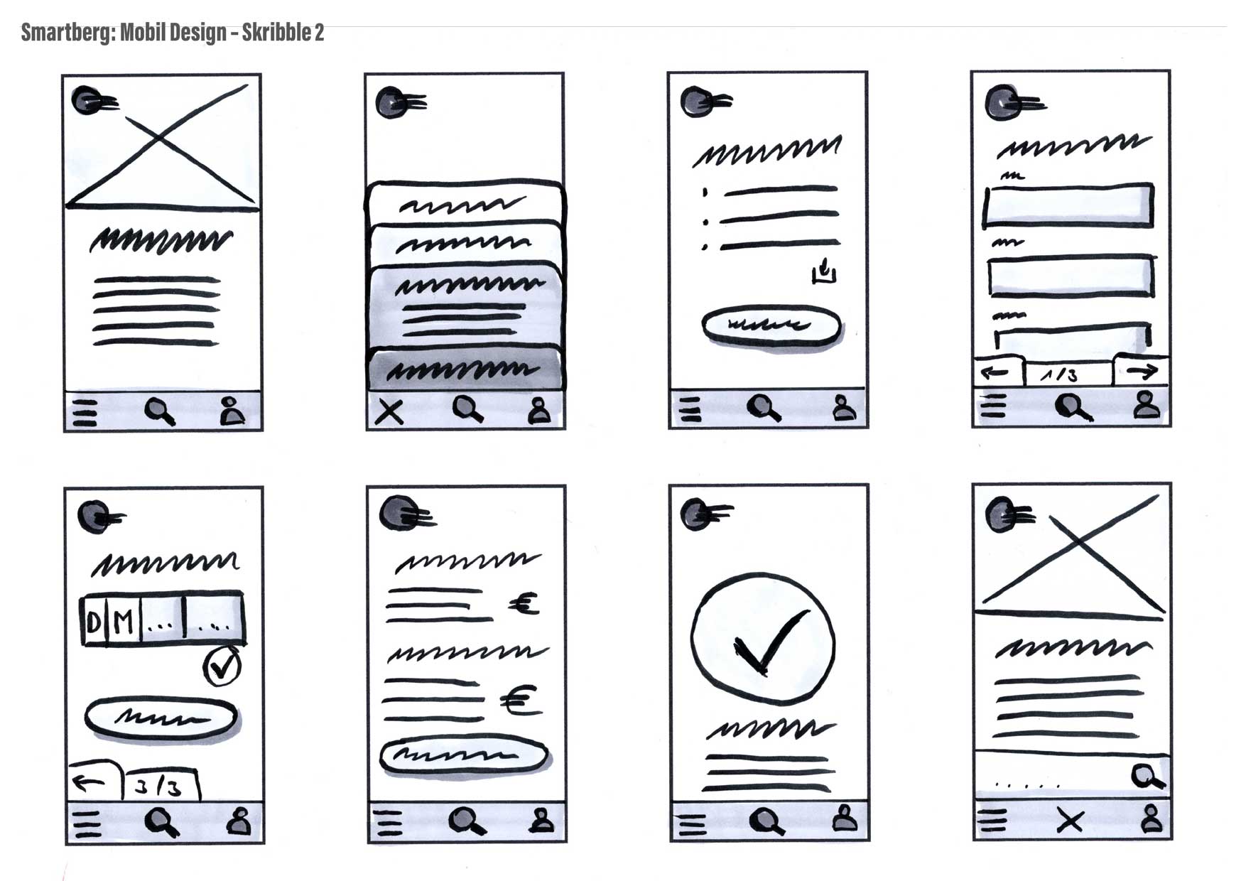Wenn die groben Konzepte erstellt und sattelfest sind, beginnt die Kernarbeit von Designern, Ingenieuren und Entwicklern. Dann geht es darum eine Idee für eine Website, App Service oder Plattform zum Leben zu erwecken. Dies geschieht im Rahmen des Informations- und Interaktiondesigns. Dies geschieht durch erste visuelle Darstellungen von Ideen durch Scribbles oder Storyboards.