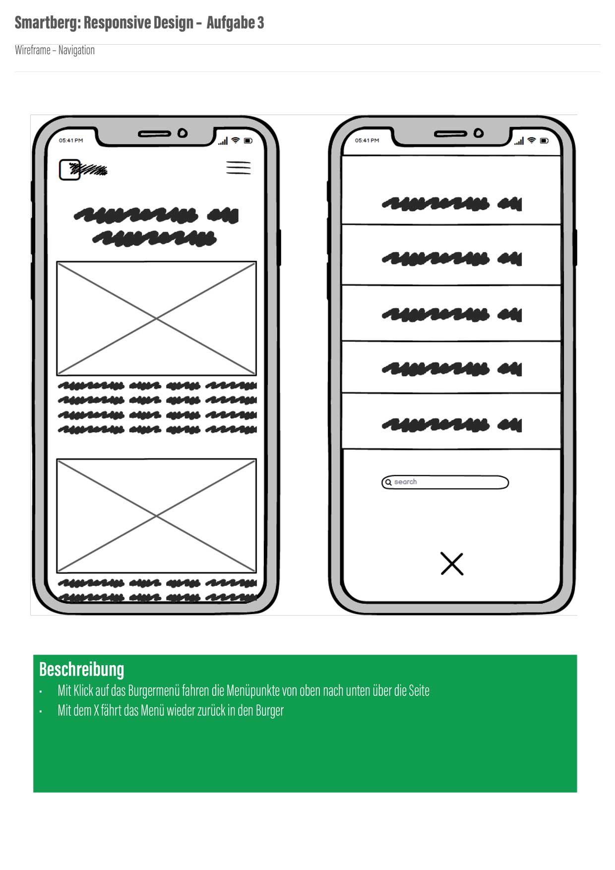 Bei der Entwicklung einer neuen Webseite oder App sollte man immer auch eine Mobile Ansicht mit bedenken. In diesem Fall ging es in erster Linie um die Navigation und wie sie Mobil am besten umgesetzt werden sollte. Außerdem habe ich ein paar Skizzen, von unterschiedlichen Bereichen der Seite angefertigt