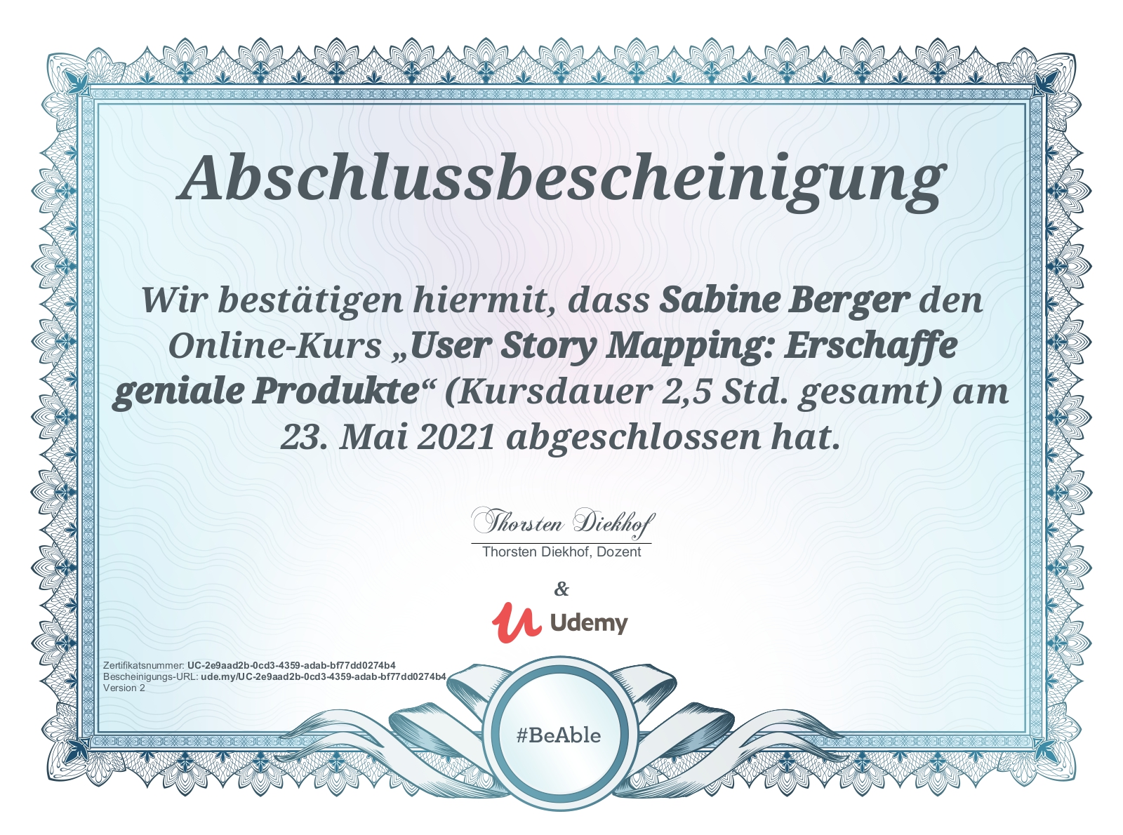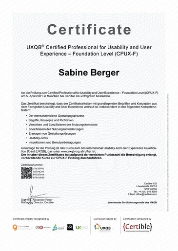 Ab Anfang 2020 arbeitete ich gezielt daran, dieses Können auszubauen und zu trainieren. Von August bis Dezember 2021 absolvierte ich dafür eine ausführlichen Weiterbildung zur UX-Designerin.