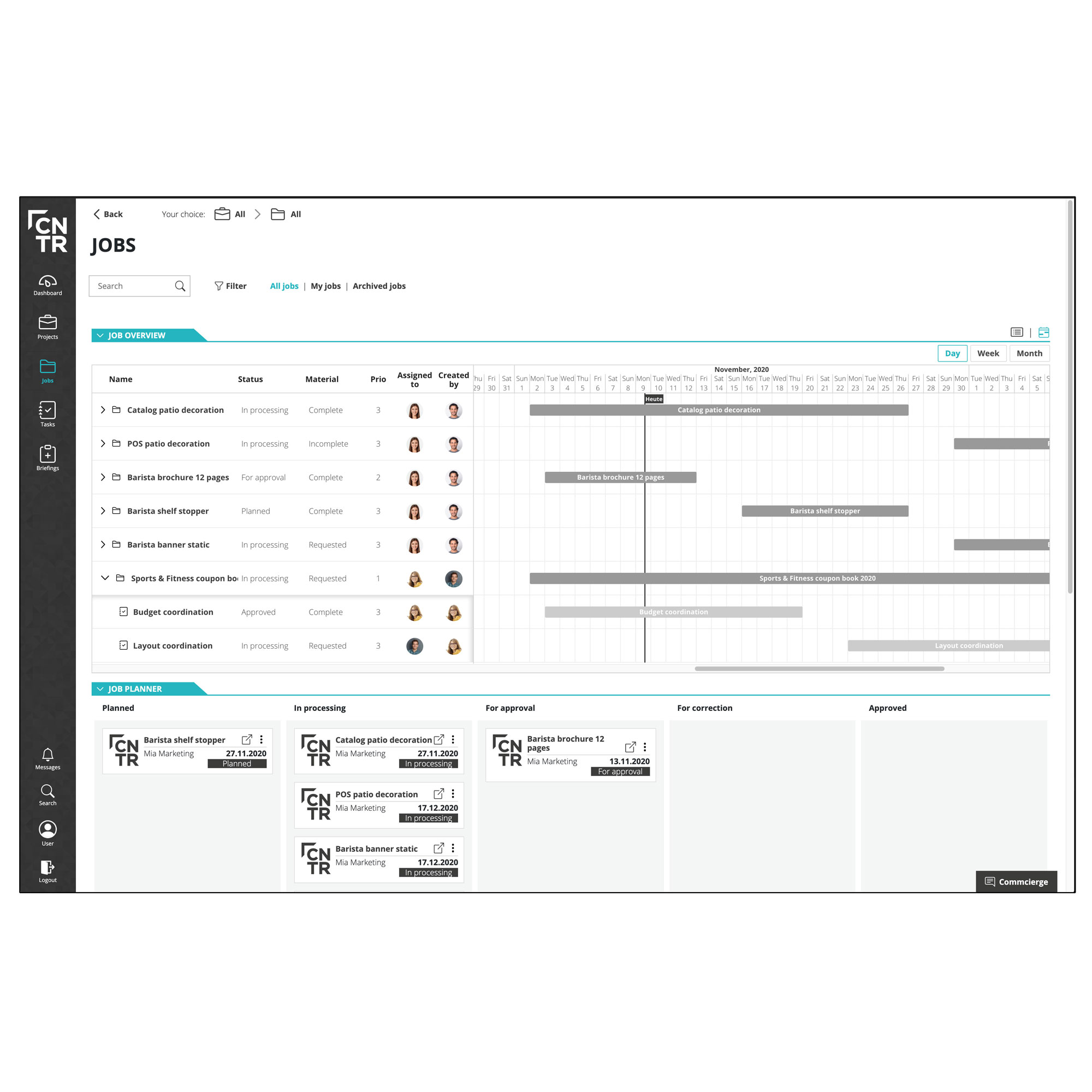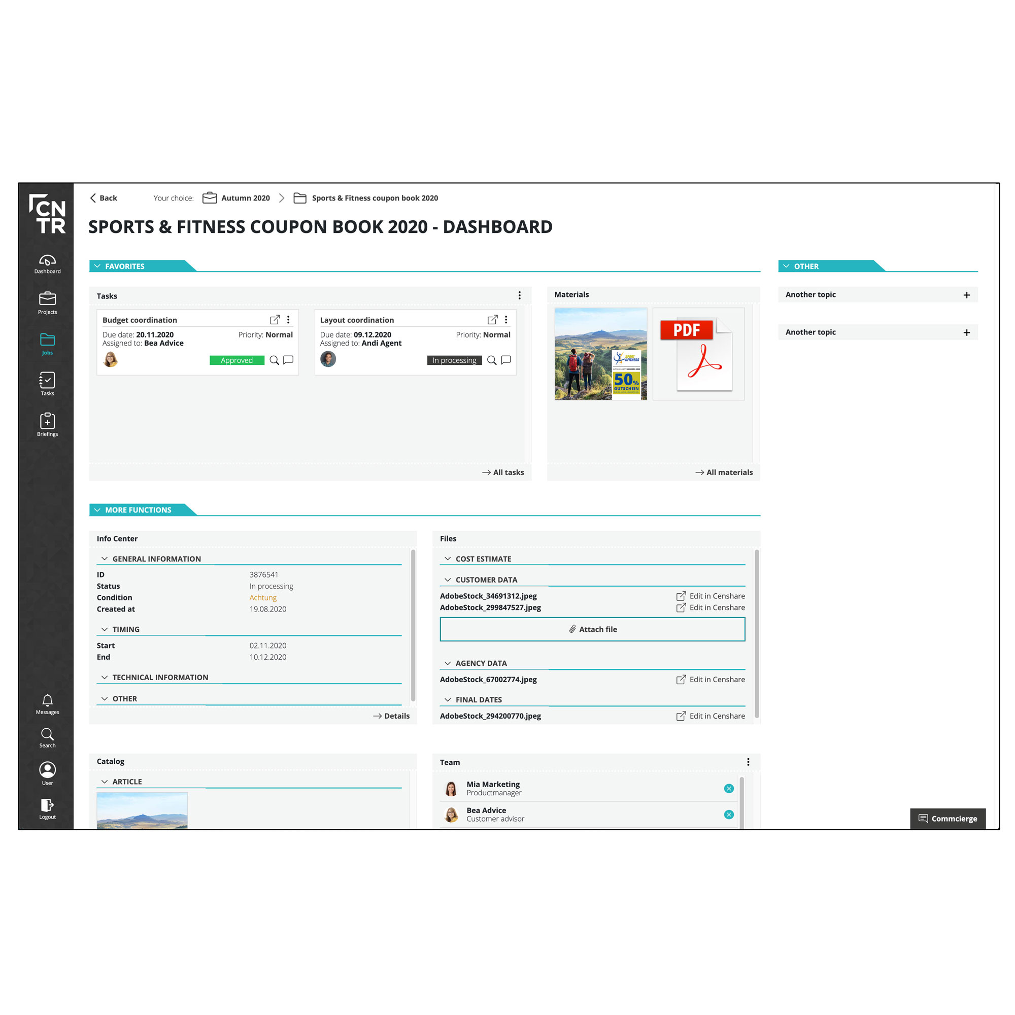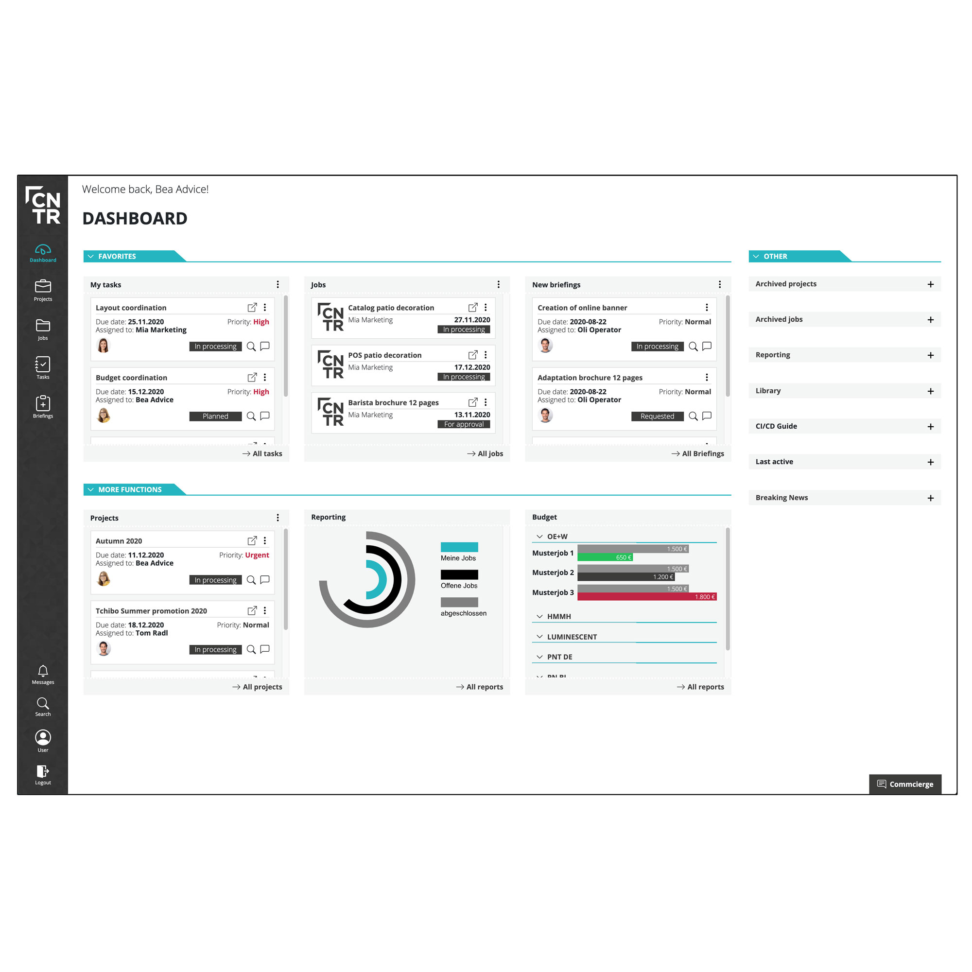 Die Firma Serviceplan Solution ist nicht nur eine Produktionsagentur, sie bieten auch eine selbstentwickelte Marketing-Plattform namens CNTR. CNTR gleicht einem Baukasten, der mit Basiselementen und Zusatzbausteinen für jeden Kunden die perfekte Lösung bereithält. Mit Modulen wie einer Collaboration, einer Library und einem CI-Modul, wird aus CNTR ein zentraler Dreh- und Angelpunkt, an dem alle Elemente effektiver Kommunikation zusammenlaufen.