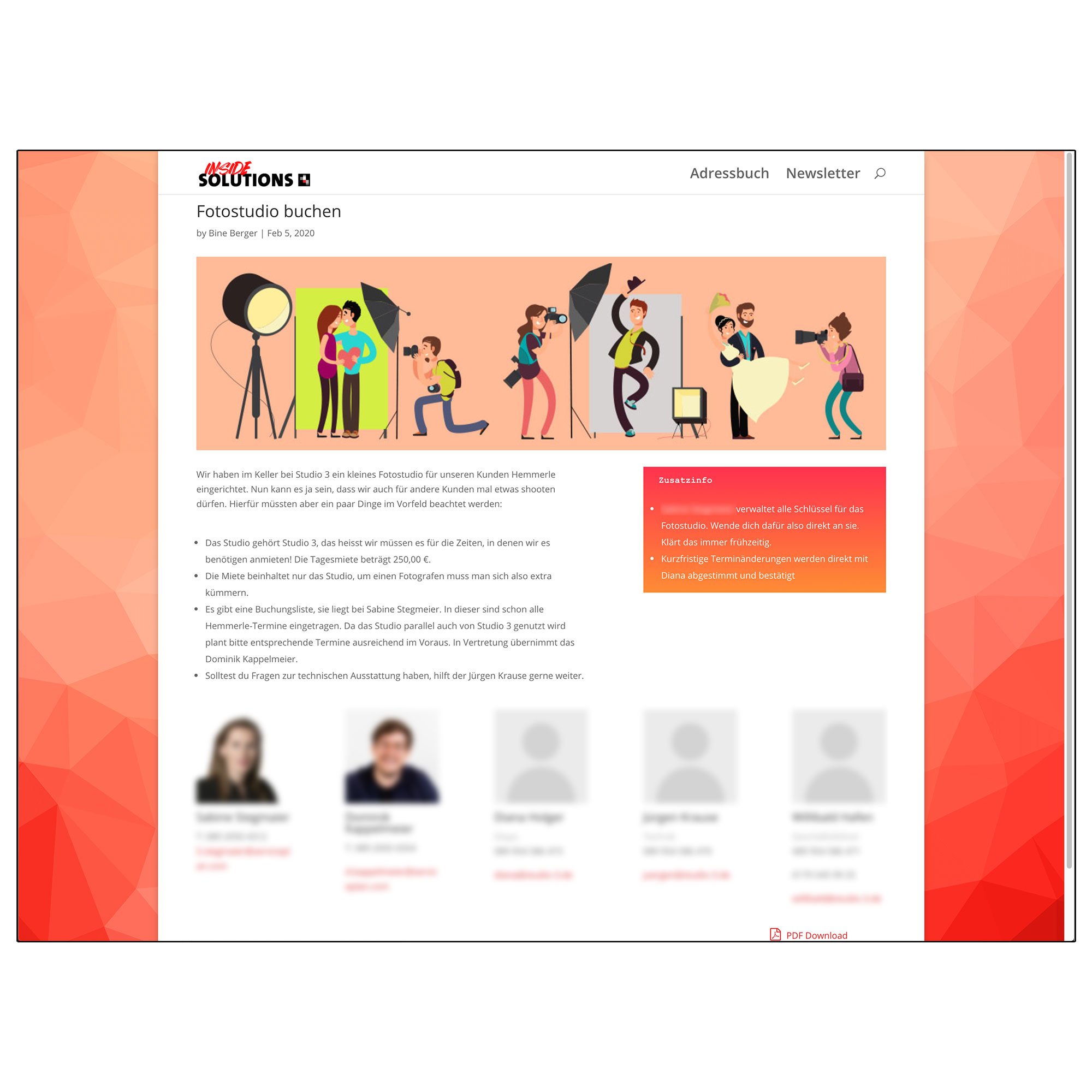 Inside Solutions ist eine Art Intranet, speziell für Themen, die die Serviceplan Solutions betreffen. Hier finden neue Kollegen alle nötigen Infos, während die Plattform Alteingesessenen als Nachschlagewerk dient.